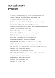 Ausgewählte Dokumentation der Ausstellungen, Filme und Projekte von 1987 bis 2010