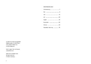 Dieses Buch umfasst 195 DinA4 Zeichnungen, die zwischen dem 15. Mai und dem 24. November 2014 entstanden, sowie drei nachgetragene Blätter aus dem Februar 2015. Die tägliche Aufgabe bestand darin eine Bleistift-Zeichnung, meist nach eigenen Fotos, anzufertigen. Die Vorlagen wurden Tag für Tag ausgesucht. Ein großer Teil der Motive geht auf Aufnahmen aus Mexiko zurück, aber auch aus Warschau, Katalonien und von anderen Orten. Für die Zeichnungen selbst ist nicht entscheidend, wo das Motiv ursprünglich aufgenommen wurde (abgesehen von der persönlichen Erinnerung), sondern der Duktus, die Art der Umsetzung in das andere Medium. Die zeichnerische Abstraktion, die auch bei figurativer Darstellung der Gestaltung und Gestik inhärent ist, ermöglicht in der Abfolge neue situative Verbindungen über Raum- und Zeit-Zusammenhänge hinweg. Durch die chronologische Anordnung entsteht eine Bilder-Geschichte mit Kontinuitäten, Brüchen und Sprüngen.