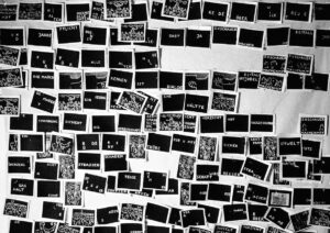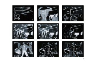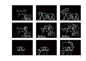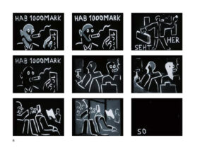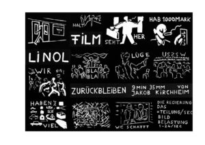 Nachdem aus fünfzig Linolschnitten ca. 500 Filmdrucke hergestellt waren und sich, nach mehreren Test-Verfilmungen, die Reihenfolge der Grafiken und Schriften herauskristallisiert hatte, war der erste, auf Super-8 gedrehte Linolfilm im Herbst 1987 fertiggestellt.
