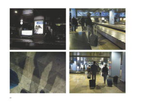 Auf Flughäfen, in U-Bahnen, Ausstellungen, in Madrid: dieses Buch zeigt in der Art eines fotografischen Tagebuchs Eindrücke, deren Abfolge durch die Chronologie des Erlebten und Festgehaltenen bestimmt wird. Es geht um die kurze Zeitspanne von vier Tagen, zwischen dem 27. Februar und dem zweiten März 2015, um eine Reise von Berlin nach Madrid und von dort nach Mexiko-Stadt. Das ist einerseits Privatsache, andererseits Beobachtung und Erinnerung, der Versuch einige Stückchen dieser Erlebnisse zu überliefern, ein wenig zu interpretieren und unbedeutenden, scheinbar selbstverständlichen Dingen Raum zu geben. Sobald die Außenwelt in Erscheinung tritt, in ihren banalen Aspekten, wie Rolltreppen, Kofferfließbändern, U-Bahnschächten und auch in ihren außergewöhnlichen, wie Ausstellungen, öffentlichen Protesten oder eben gewöhnlichen Spaziergängen, den öffentlichen wie privaten Räumen, Orten und Unorten, äußert sich etwas, davon wird erzählt.