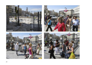 Madrid me mata, Madrid bringt mich um, lautet ein bekannter Spruch über die spanische Hauptstadt. Es stimmt, gerade im Zentrum sind je nach Tageszeit sehr viele Menschen unterwegs, es ist eng, laut und hektisch. Mittags wirken manche Ecken dann wieder verschlafen und menschenleer. Wichtige historische Zeugnisse trifft man auf Schritt und Tritt, es sind zu viele um sie hier auch nur annähernd erschöpfend aufzuführen. Dieses Buch will kein weiterer Madrid-Reiseführer sein. Seit Mitte der 1980er Jahre habe ich mir die Stadt erlaufen, in endlosen Schleifen, von einem Ende der Gran Vía, die als Achse das Zentrum in zwei Hälften teilt, bis zum anderen an der Plaza de España und in zahllosen Schlangen- und Zickzack-Bewegungen. Die Bilder konzentrieren sich auf die letzten Jahre, neben den fotografischen Eindrücken eines Flaneurs reflektieren sie gesellschaftliche Ereignisse, die sich seit Beginn der Krise 2008 zeigten.